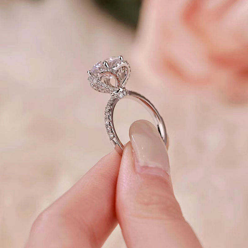 แหวนหมั้นและแต่งงานทองคำ 18K ประดับเพชรธรรมชาติทรงกลมเจียระไนแบบบริลเลียนท์ สีขาว G สไตล์หรูหรา ขายดีอันดับต้นๆ