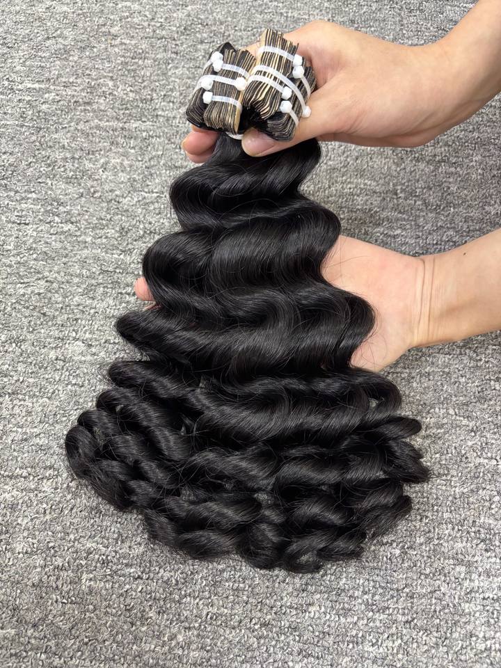 เทปต่อผมเวียดนามขายดีประจำปี 2024 ผมหยิกธรรมชาติ คุณภาพดีที่สุด ผมเวอร์จิ้นแท้ 100% เย็บสองชั้นทั้งเส้น ทุกสี จากเมืองบัค นิน ประเทศเวียดนาม