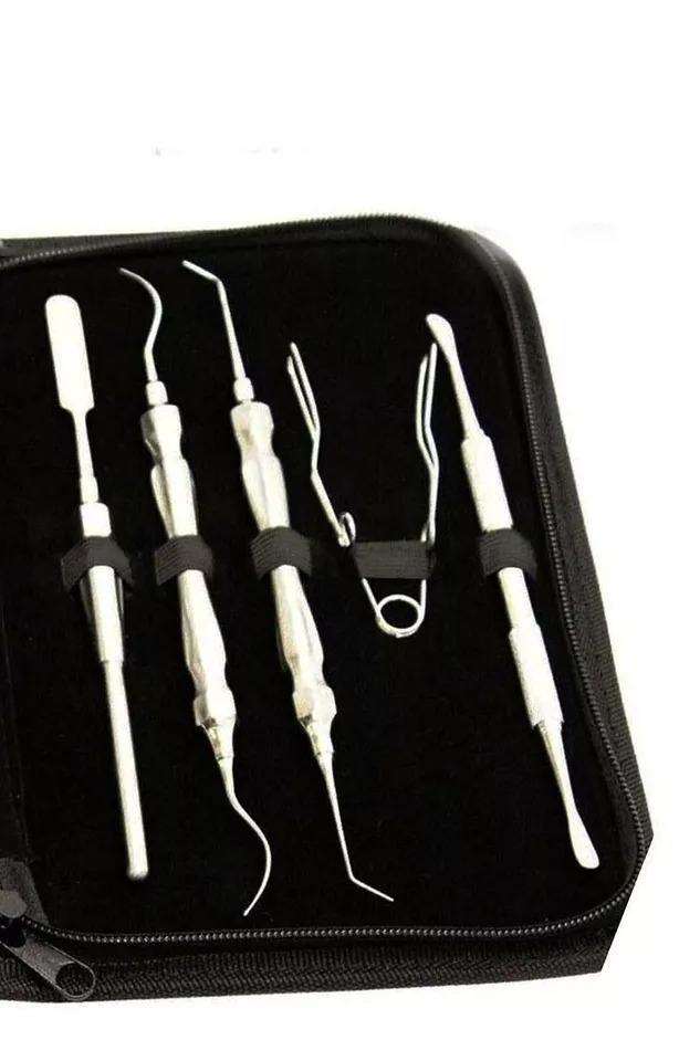 ชุดอุปกรณ์ทำฟันสเตนเลส9ชิ้นกระเป๋าสีดำดีไซน์ตามหลักสรีรศาสตร์เครื่องมือสัตวแพทย์ที่แปลกใหม่