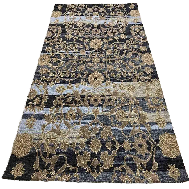พรมผ้าไหมสีเบจทำด้วยมือแบบแอบสแตรกต์ชุดพรมปูพื้นพื้นที่แบบปักลายเทคนิคแบบห่วง