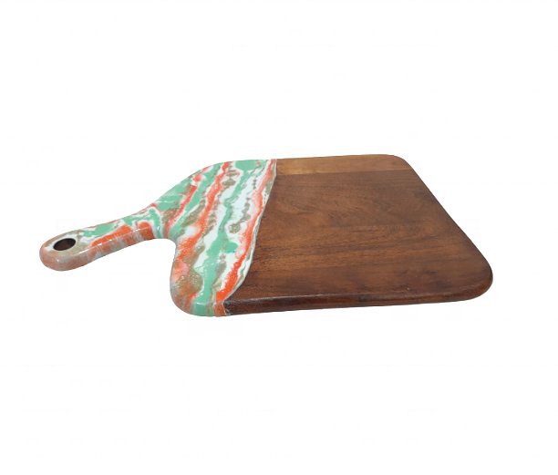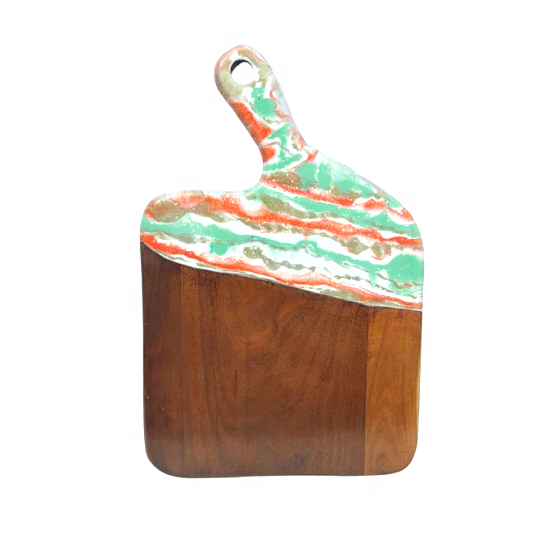 เขียงไม้อะคาเซียอีพอกซีเรซินใช้ในครัวเสิร์ฟชีสพายแผ่นไม้เรซินของขวัญเตรียมอาหารที่บ้าน