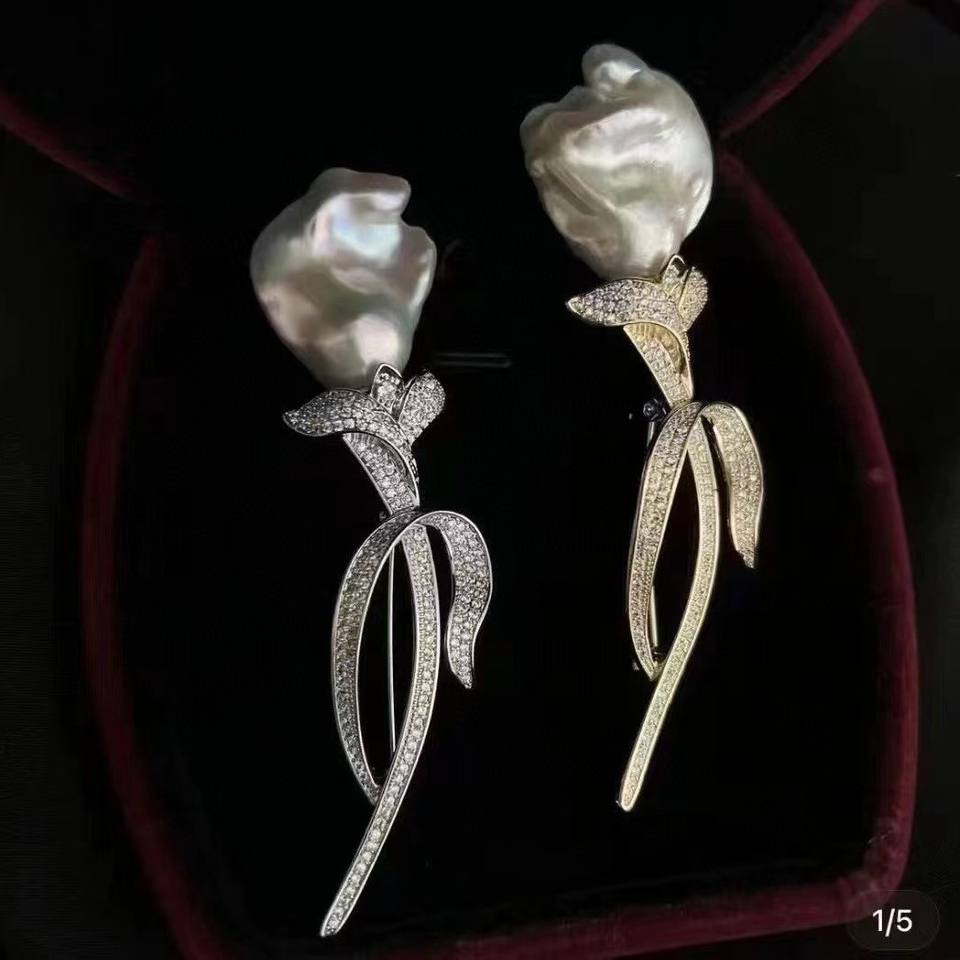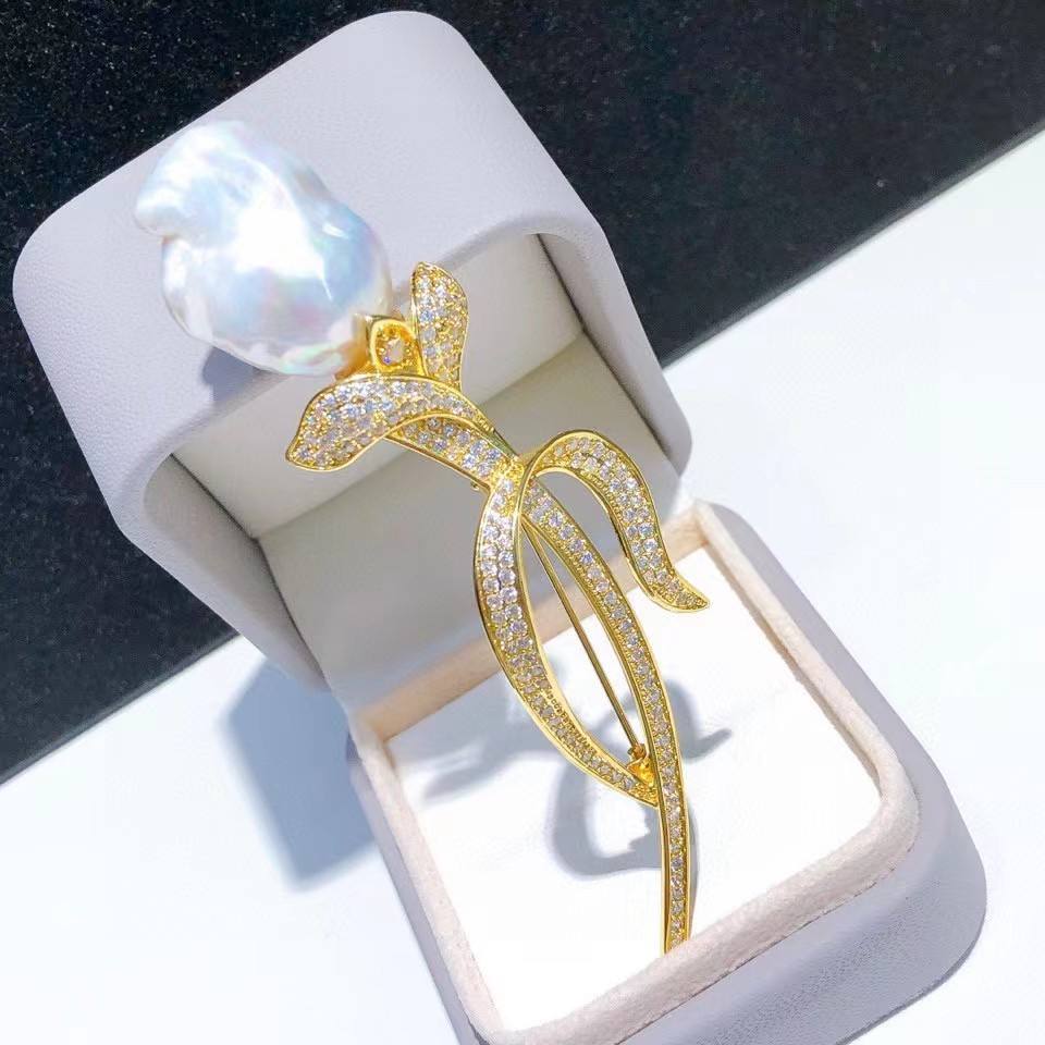 เข็มกลัดมุกน้ำจืดแท้ทรงบาร็อคธรรมชาติ ทิวลิป ยอดขายอันดับหนึ่ง ขนาด 15-16 มม. สีออโรร่า เครื่องประดับสุดหรู แฟชั่นเครื่องประดับติดหน้าอก