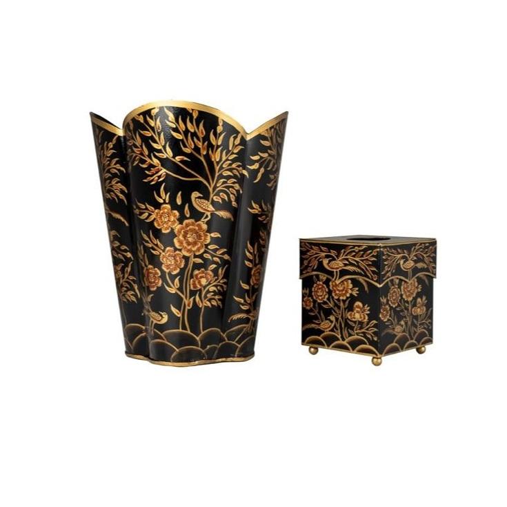 Top Selling Antique Style Iron Trash Bin Decorative Hand Painted Metal Waste Basket Vintage Garbage Can Custom Size Shape