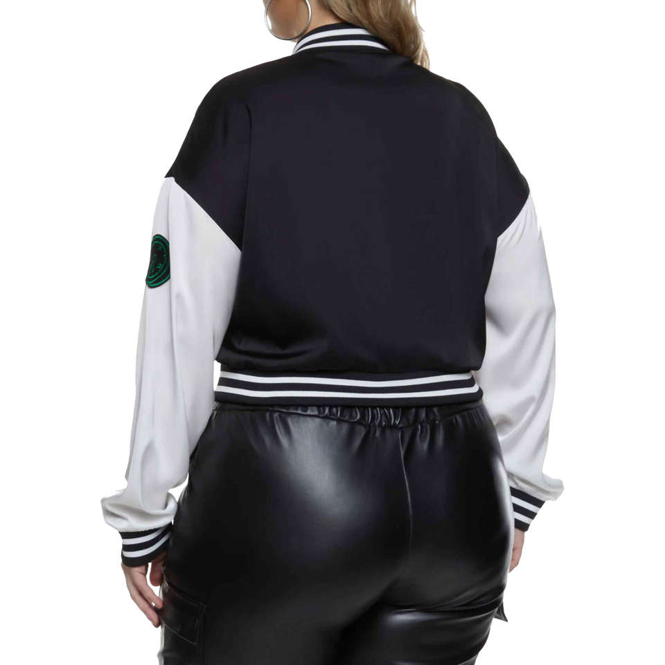 เสื้อแจ็กเก็ตผ้าซาตินครอปสำหรับผู้หญิง