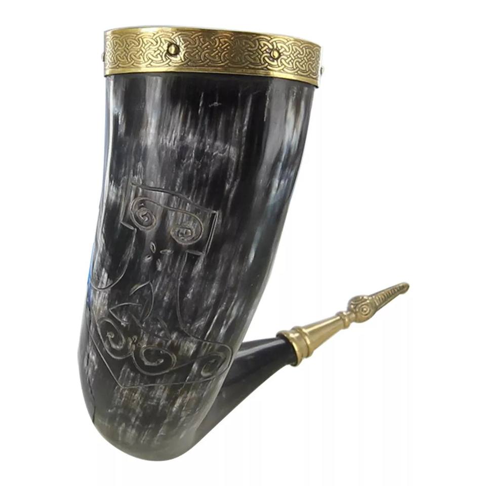 แก้วน้ำเขาสัตว์สไตล์ไวกิ้งแท้ ขายดีที่สุด ขัดเงา ดีไซน์แกะสลักใหม่ ขนาด 30 ซม. แก้วเบียร์ ปลอดภัยสำหรับอาหาร ไม่รั่วซึม ลายสัตว์