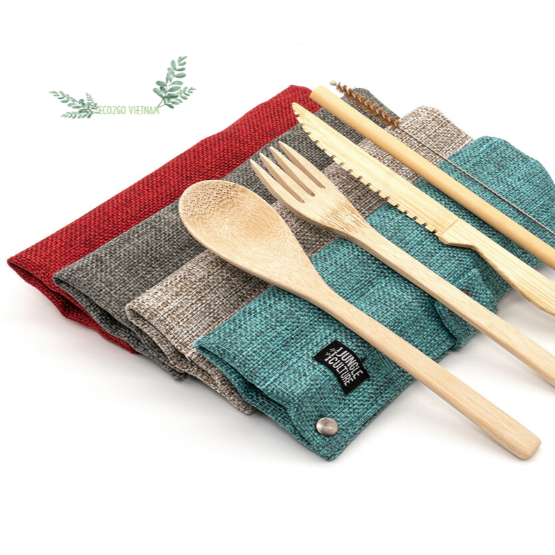 ชุดช้อนส้อมไม้ไผ่ขายดี - ช้อน - ส้อม - มีด - ตะเกียบ - หลอด - ที่ทำความสะอาดหลอด สำหรับการเดินทางและกิจกรรมกลางแจ้ง