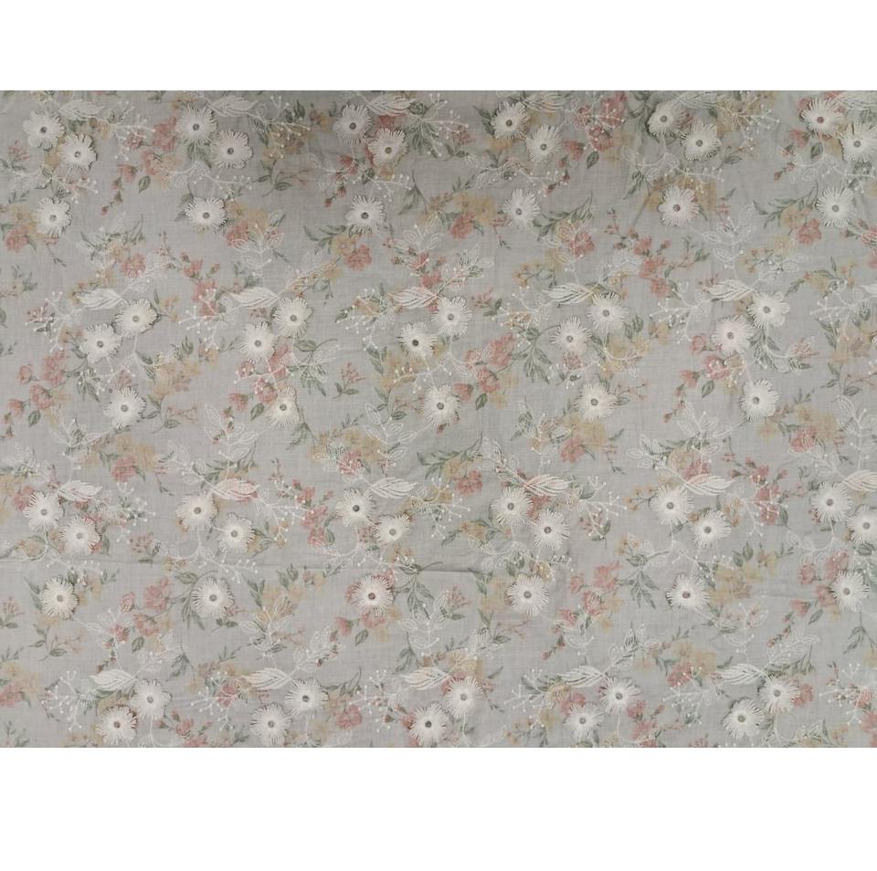 White 3D Floral Appliqué Printed Cotton Fabricชนิด