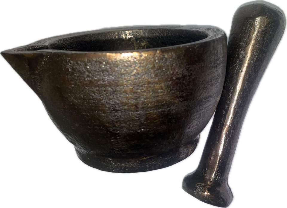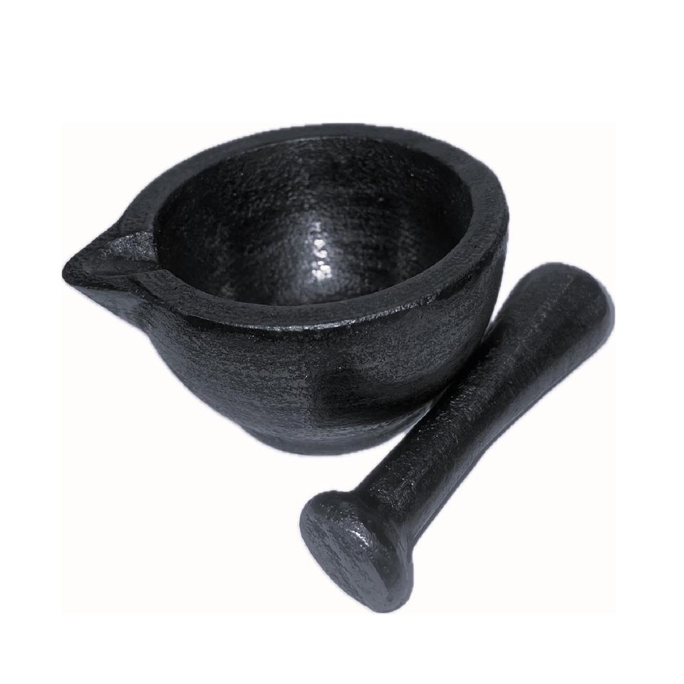 ครกเหล็กหล่อและสากสำหรับเครื่องเทศสมุนไพรกระเทียมเครื่องบดและเครื่องบด