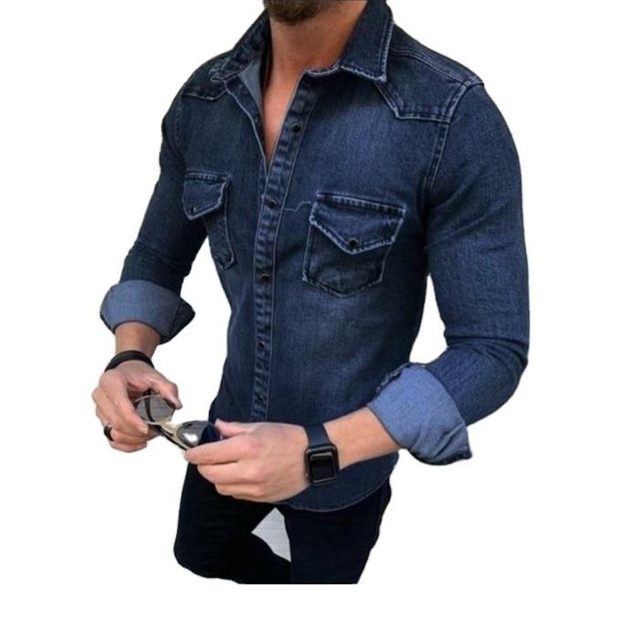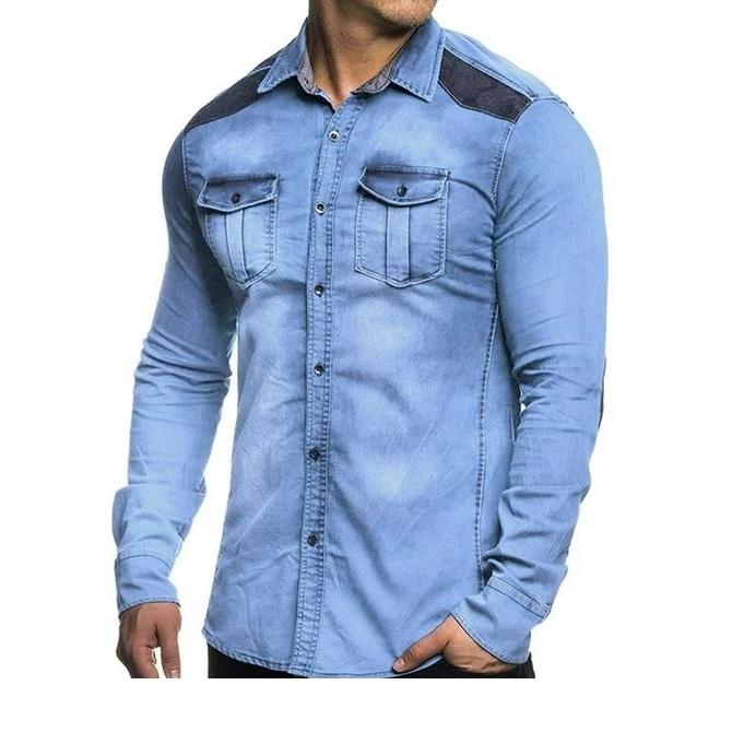 เสื้อเชิ้ตเดนิมผู้ชายขายดี แขนยาว กันยับ แห้งเร็ว ระบายอากาศดี สินค้ามาใหม่สำหรับฤดูใบไม้ร่วง จากบังกลาเทศ