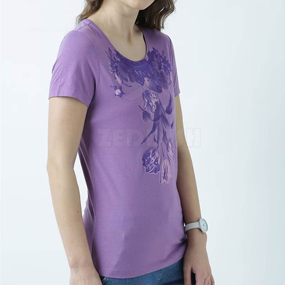 เสื้อยืดผู้หญิงแขนสั้นคอกลมพิมพ์โลโก้ตามสั่ง