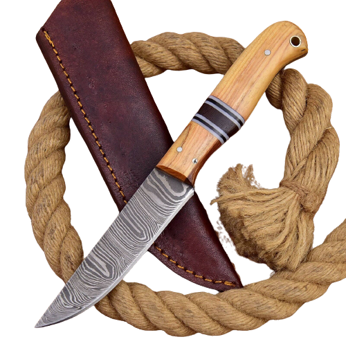 เครื่องมือทำอาหารขายดีมีดสแตนเลสคาร์บอนสูงพร้อมที่จับไม้และเคสหนัง