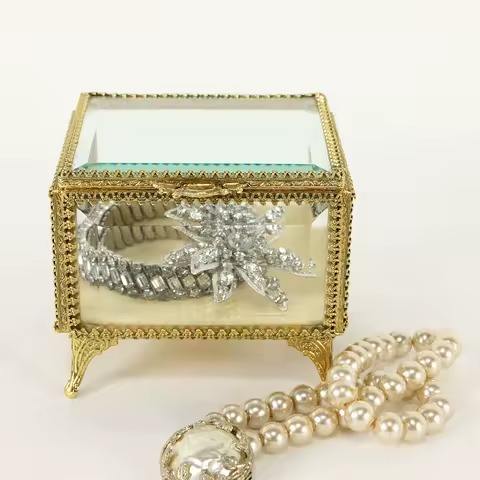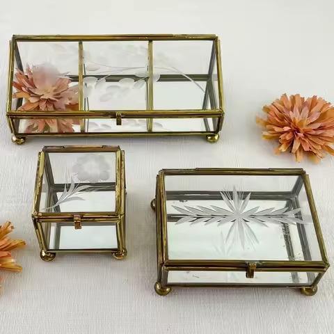 กล่องเครื่องประดับแก้วใสกรอบโลหะทองแดงสำเร็จรูปขายดีกล่องจัดระเบียบพร้อมกล่องใส่แหวนและต่างหู