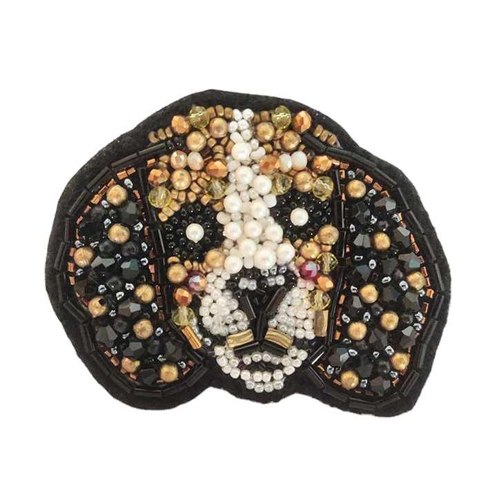 เข็มกลัดผู้หญิงลายสุนัขทำมือปักด้วยมือทำจากหนังนิ่มด้านหลังดีไซน์ตามสั่ง