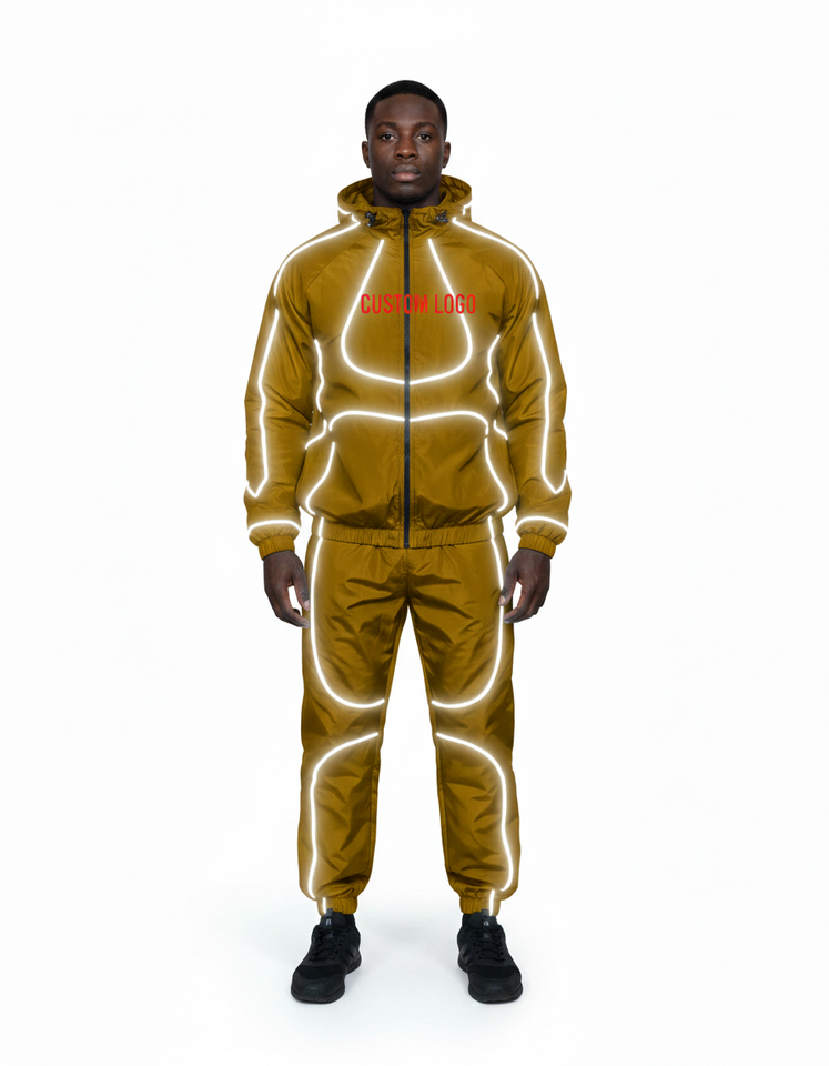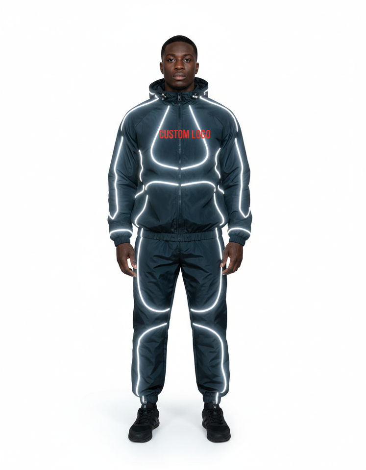 แจ็คเก็ตกันลมแบบมีซิปสั่งทำยอดนิยม พร้อมแถบสะท้อนแสง ชุดวอร์มไนลอน ชุดแทรคสูทไนลอน