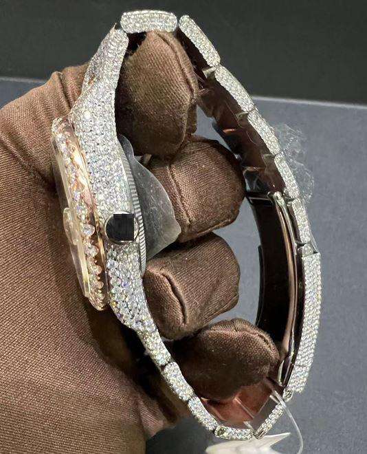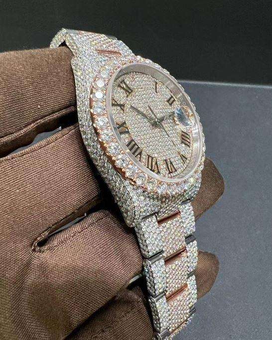 นาฬิกาข้อมือหรูหรา ระบบกลไก หน้าปัดคริสตัลแซฟไฟร์ ประดับเพชรโมอิสซาไนต์ VVS คุณภาพสูง สองสี ทนทานต่อน้ำได้ 10 บาร์ รุ่นขายดี