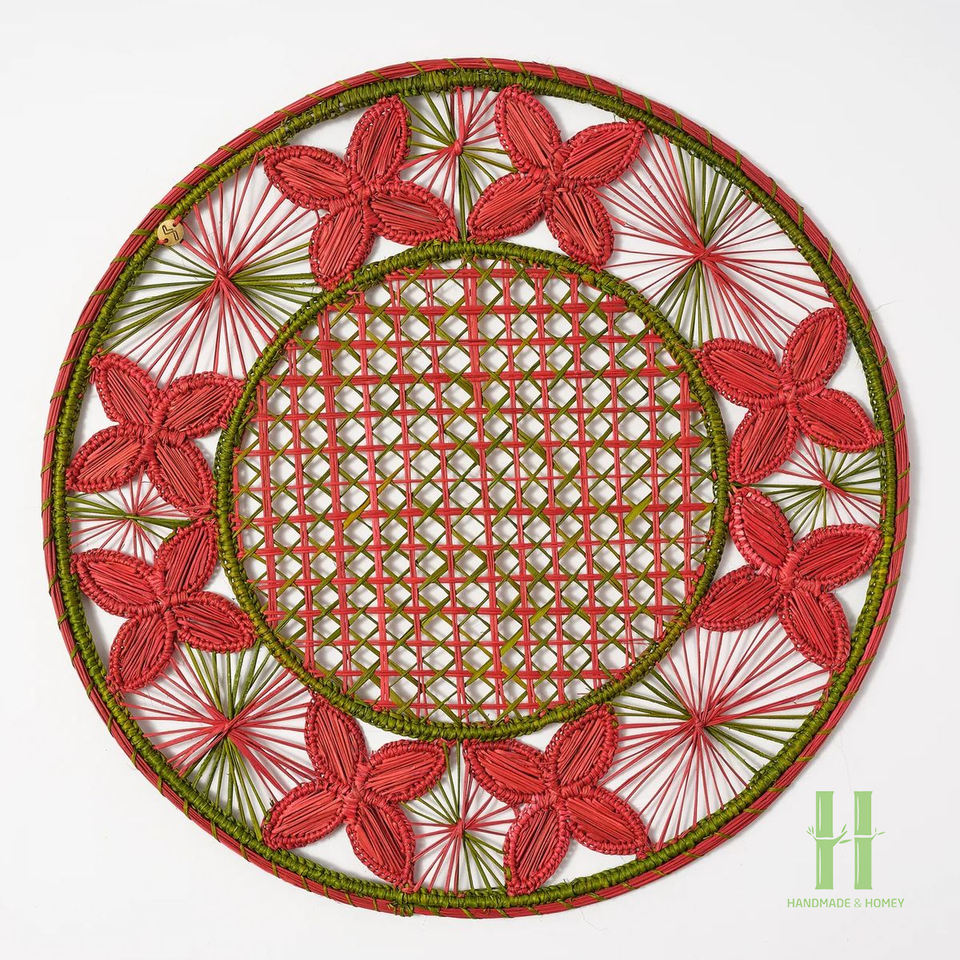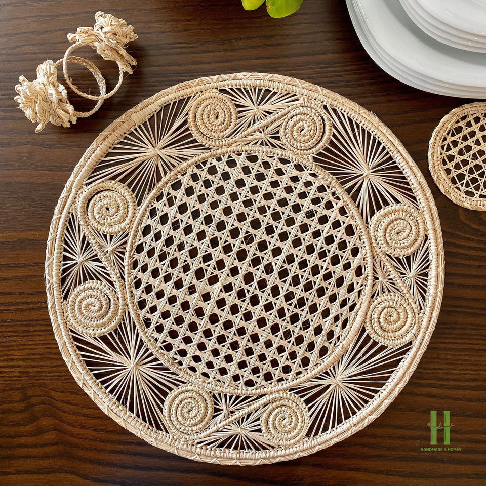 จานรองอาหารทรงกลมผ้าฝ้ายรักษ์โลกขายดี พร้อมแผ่นรองจานหวายสไตล์โบโฮ สำหรับตกแต่งโต๊ะ จาก HNH CRAFT