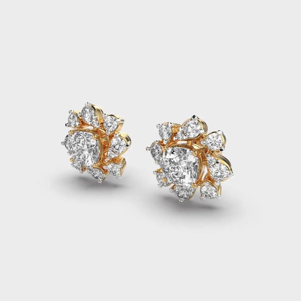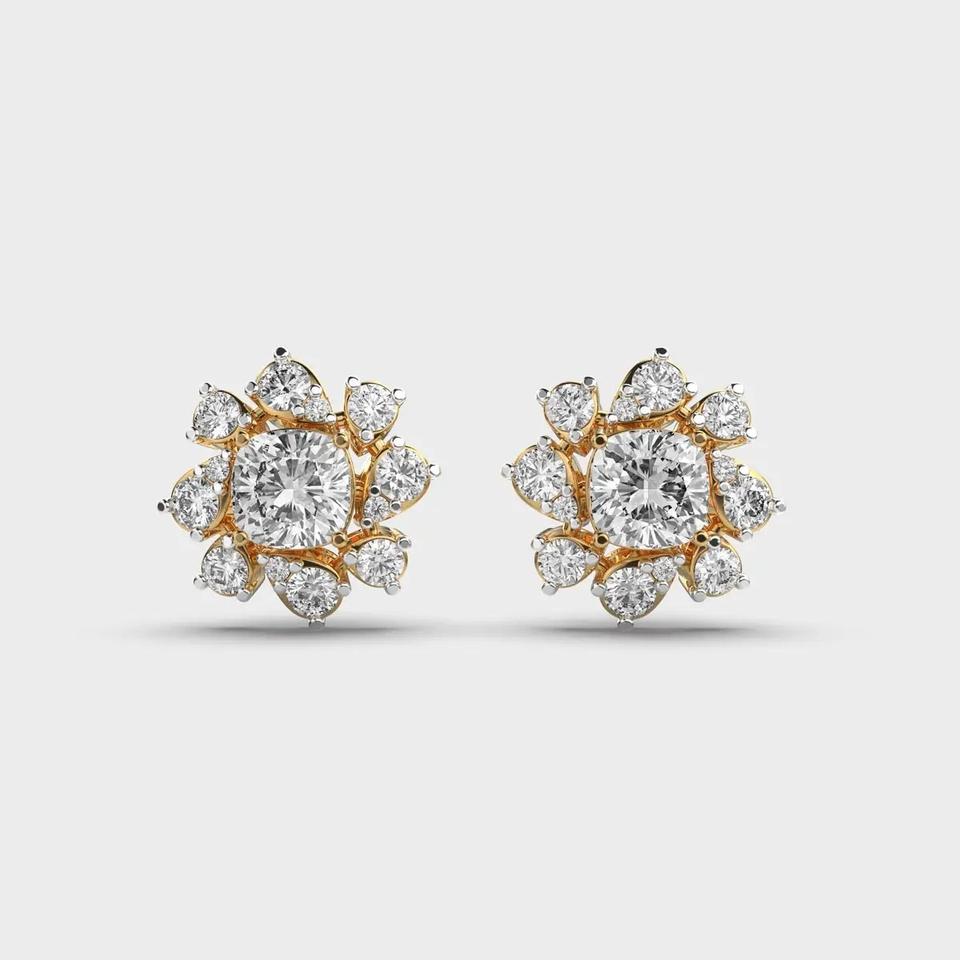 ต่างหูเพชรเม็ดกลมหรูหราสีทอง14K เหมาะสำหรับใส่ในชีวิตประจำวันหรือเป็นของขวัญที่ใส่ใจสำหรับเธอ