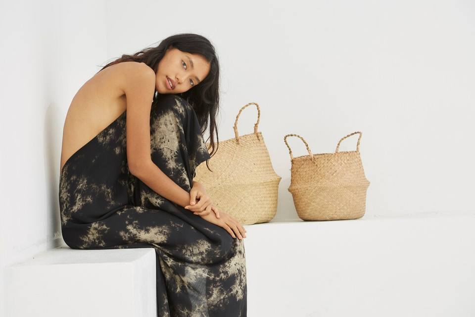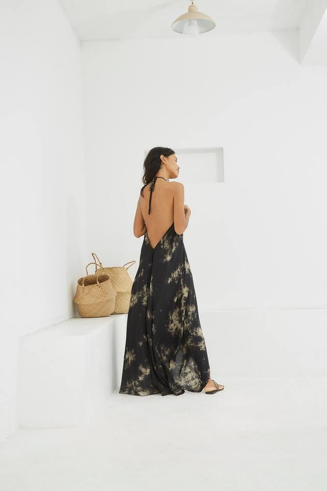 เดรสสำหรับผู้หญิงเดรสย้อมสีมัดย้อมพิมพ์ลายสไตล์โบฮีเมียนลำลองทันสมัยทันสมัย