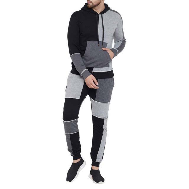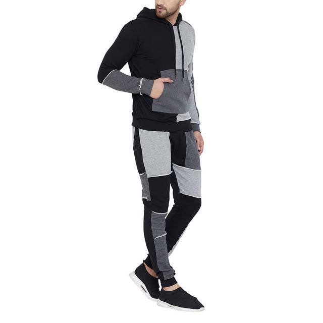 ชุดวอร์มแฟชั่น2ชิ้นชุดวอร์มทรงหลวมสำหรับฤดูหนาวชุดออกกำลังกายแบบบล็อกสี
