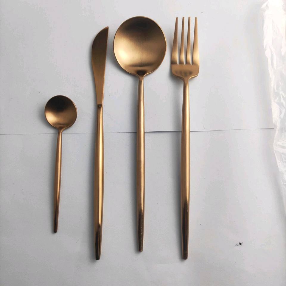 Top Selling Flatware Set Cutlery Brass Meta Matte Polished set of 4 spoon fork & knife at best price