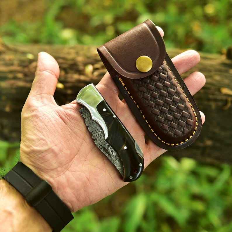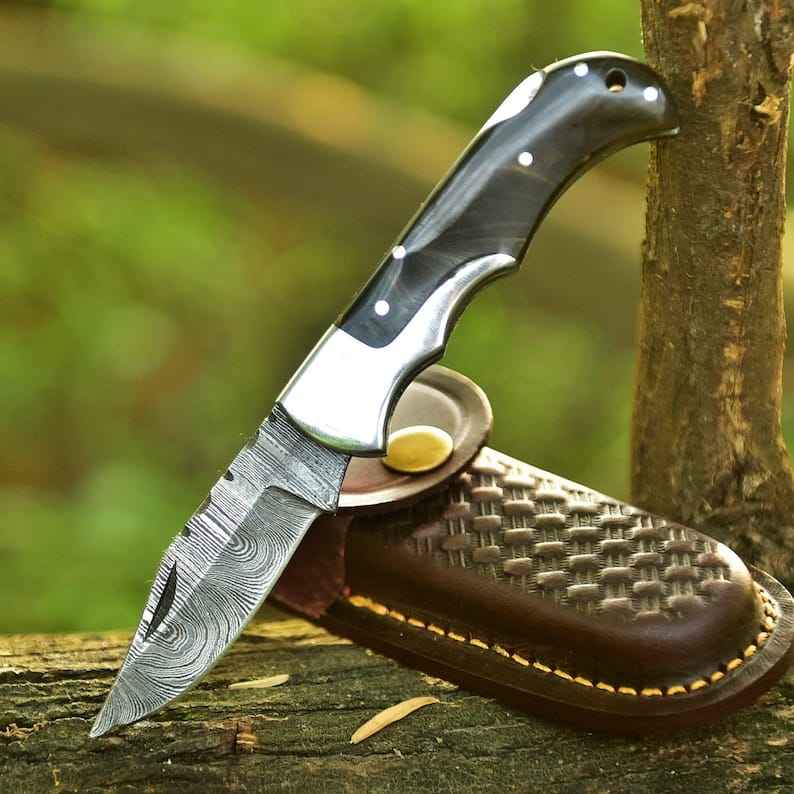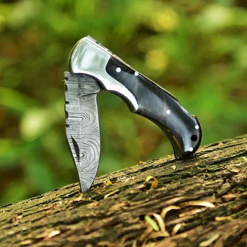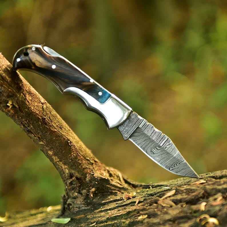 มีดพับดามัสกัสขายดีอันดับต้นๆ ผลิตแบบ OEM ทำมือ ตีขึ้นรูป ปรับแต่งได้ ระดับอุตสาหกรรม ด้ามทำจากเขาแกะ สำหรับกิจกรรมกลางแจ้ง แคมป์ปิ้ง และพกพาประจำวัน