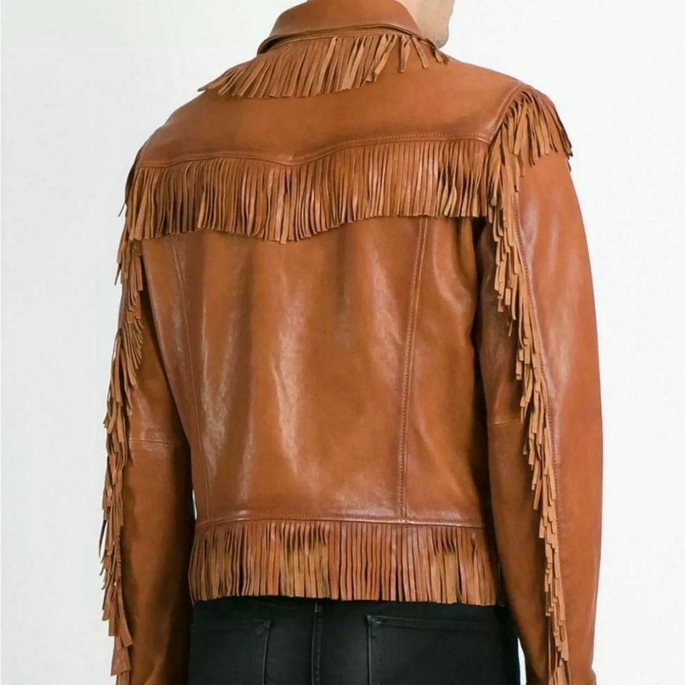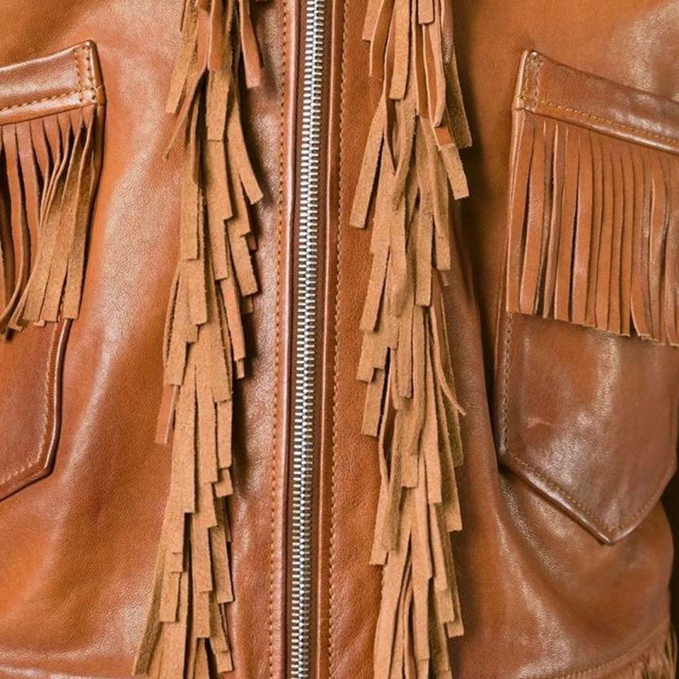 เสื้อแจ็กเก็ตหนังประดับพู่