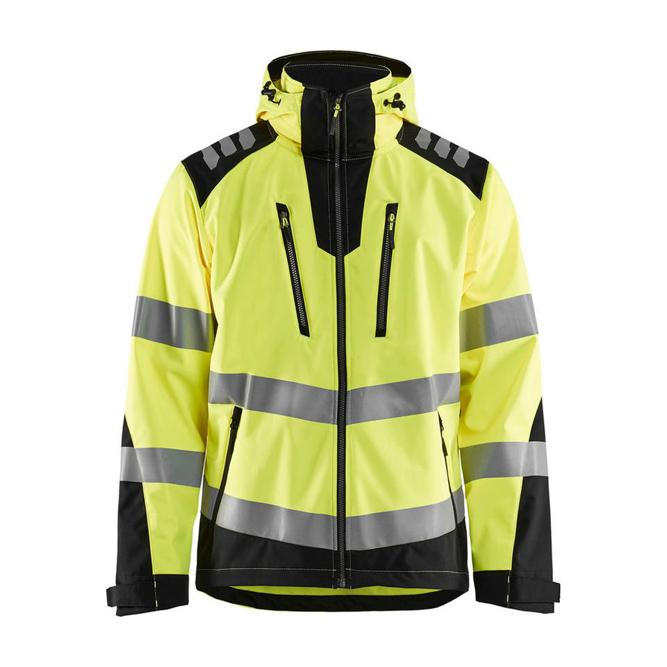 เสื้อแจ็กเก็ตผ้านิ่มสีเหลือง Hi VIS แบบปรับแต่งได้ชุดใส่ทำงานล่าสุดพร้อมปกคอตั้งและกระเป๋าด้านข้างเสื้อโค้ทสะท้อนแสง