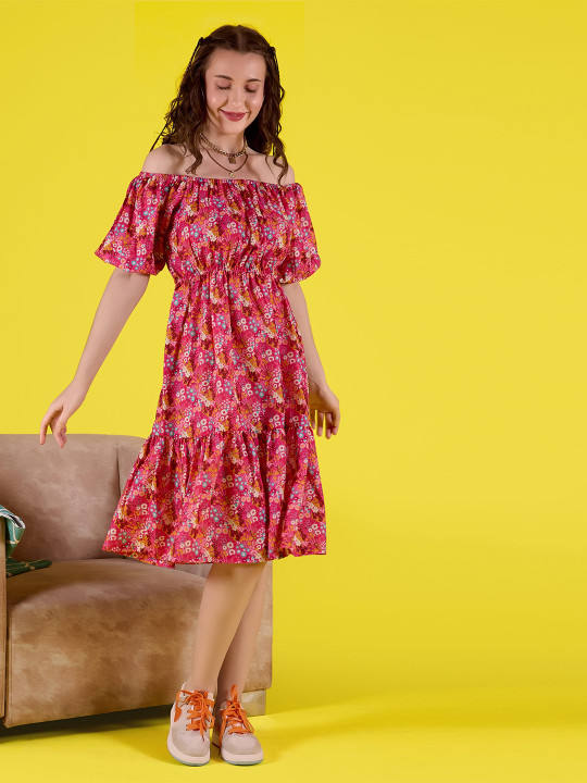 เดรสยาวปานกลางผ้าจอร์เจตต์พิมพ์ลายดอกไม้สวยงาม รุ่นยอดนิยมประจำปี 2026 สำหรับฤดูร้อน เป็นมิตรต่อสิ่งแวดล้อม เอวเข้ารูป แขนสั้น สำหรับผู้หญิงไซส์พลัส