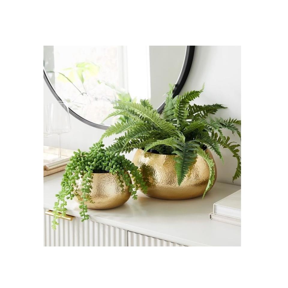 ชุดที่ปลูกต้นไม้ทองเหลืองสีทอง2ชิ้นสำหรับงานกิจกรรมและตกแต่งสวนกลางแจ้งกระถางดอกไม้