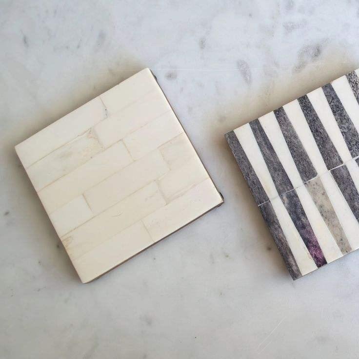 จานรองแก้ววอลนัททรงสี่เหลี่ยมแบบกลมฝังกระดูกทำมือดีไซน์ลายทางทำมือ