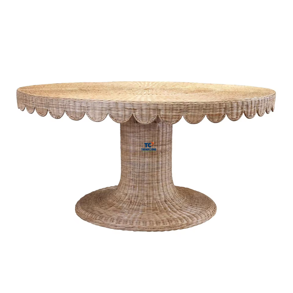 โต๊ะหวายทรงหอยพัดทำจากหวายสไตล์วินเทจที่สวยงามเป็นธรรมชาติเฟอร์นิเจอร์ทำด้วยมือ