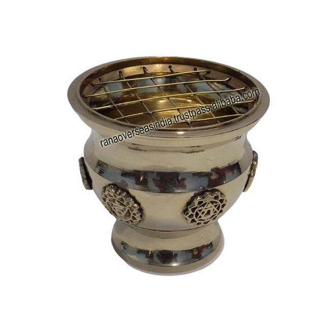 ชื่อสินค้า:กระถางธูปถ่านลายสัญลักษณ์จักระทั้งเจ็ดทำจากทองเหลือง