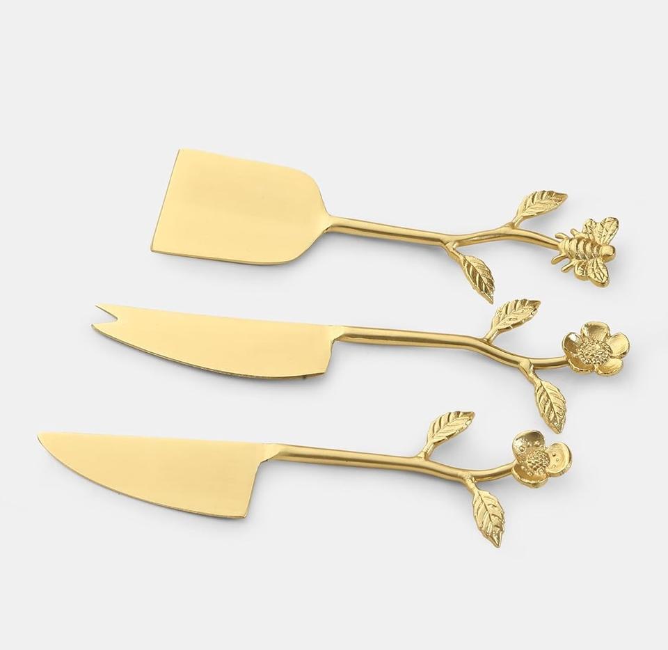 ชุดมีดหั่นชีส3ชิ้นชุดชีสชีสพรีเมี่ยมสีทองงานแฮนด์เมดโลโก้ทองออกแบบได้เองส่งตรงจากโรงงาน