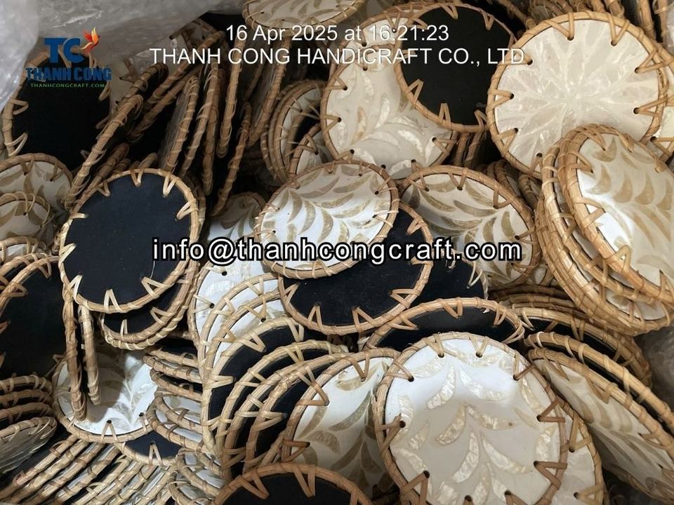 ชุดที่รองแก้วมุกแฮนด์เมด6ชิ้นชุดเป็นมิตรกับสิ่งแวดล้อมประดับด้วยหวายขอบส่งตรงจากเวียดนาม
