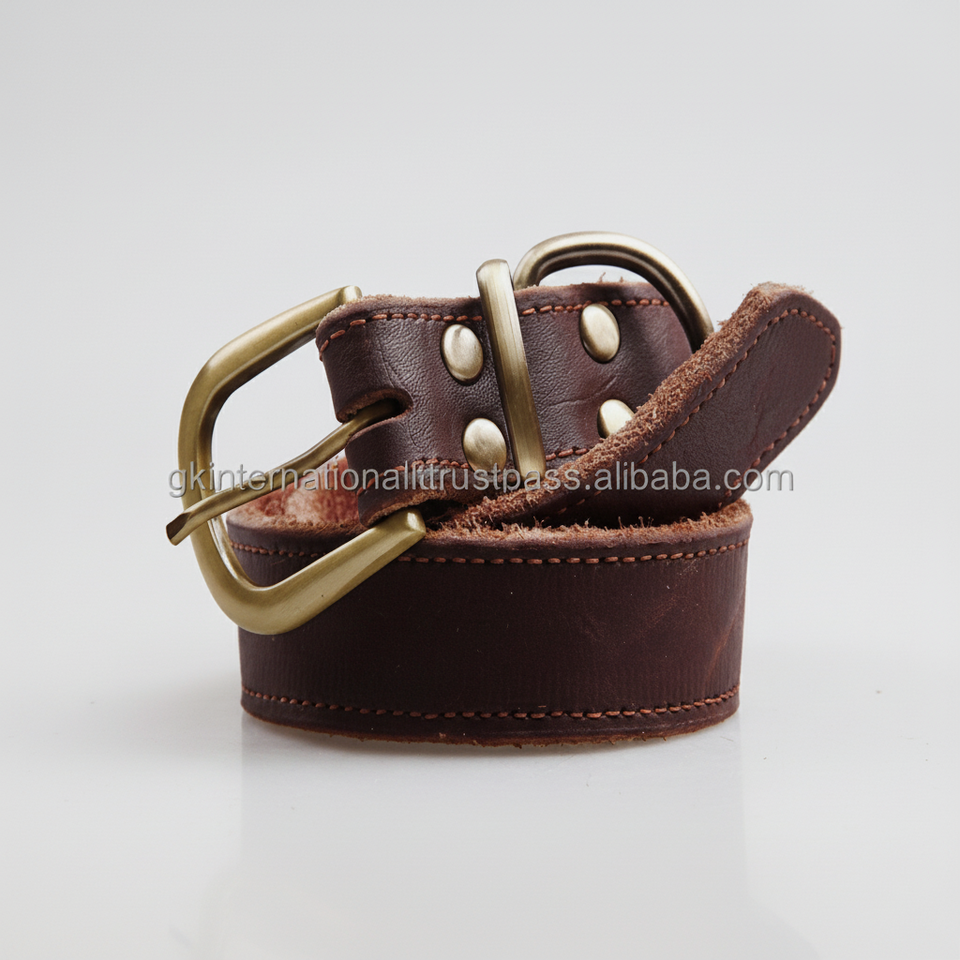ปลอกคอสุนัขหนังวัว100% แฟนซีคุณภาพระดับพรีเมี่ยมทำด้วยมือพร้อมห่วงและหมุดทองเหลืองสำหรับงานหนัก