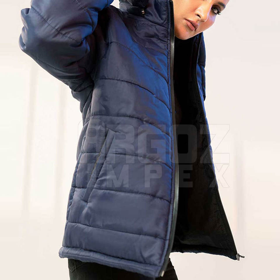 เสื้อแจ็คเก็ตพัฟเฟอร์ผู้หญิงสำหรับฤดูหนาว คุณภาพสูง ระบายอากาศได้ดี โลโก้ด้านหน้าแบบถัก ขายดีอันดับต้นๆ รับผลิตตามแบบ OEM ขายส่ง