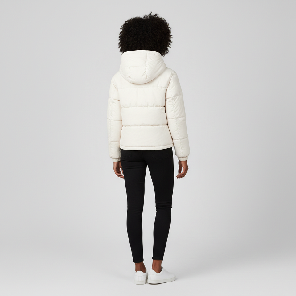 แจ็คเก็ตพัฟเฟอร์แฟชั่นสไตล์ฮิปฮอปขายดีสำหรับผู้หญิง พิมพ์โลโก้ได้ตามต้องการ ทรงหลวม ซิปแบบรูดขึ้นลง