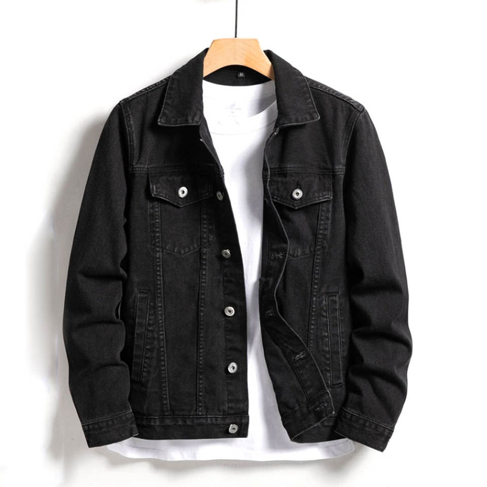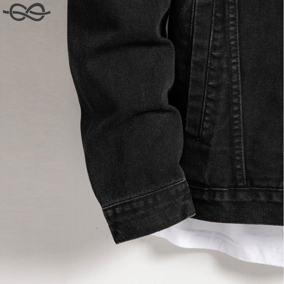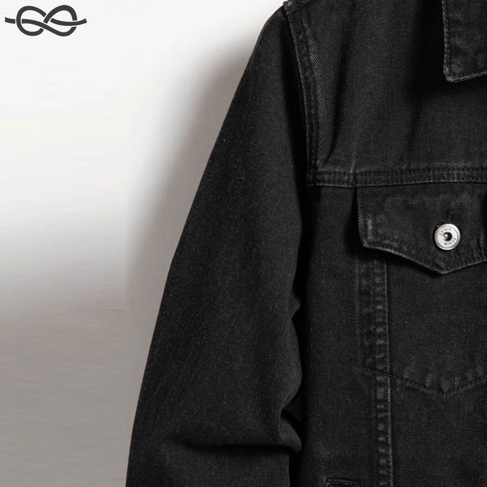Homme แจ็กเก็ตผ้าฝ้ายสีดำมีกระเป๋าปิดด้วยกระดุมเสื้อแจ็คเก็ตลำลองแขนปกติ
