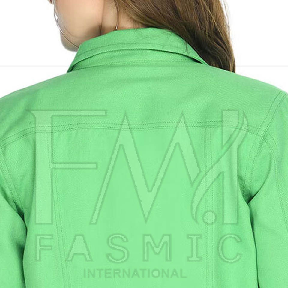 แจ็กเก็ตยีนส์แขนยาวของผู้หญิงเสื้อแจ็คเก็ตผ้าฝ้ายระบายอากาศได้ดีดีไซน์แบบกำหนดเอง