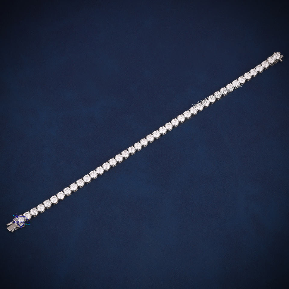 สร้อยคอเพชรโมอิสสำหรับผู้หญิงสร้อยข้อมือเทนนิส4มม. สีเงิน925