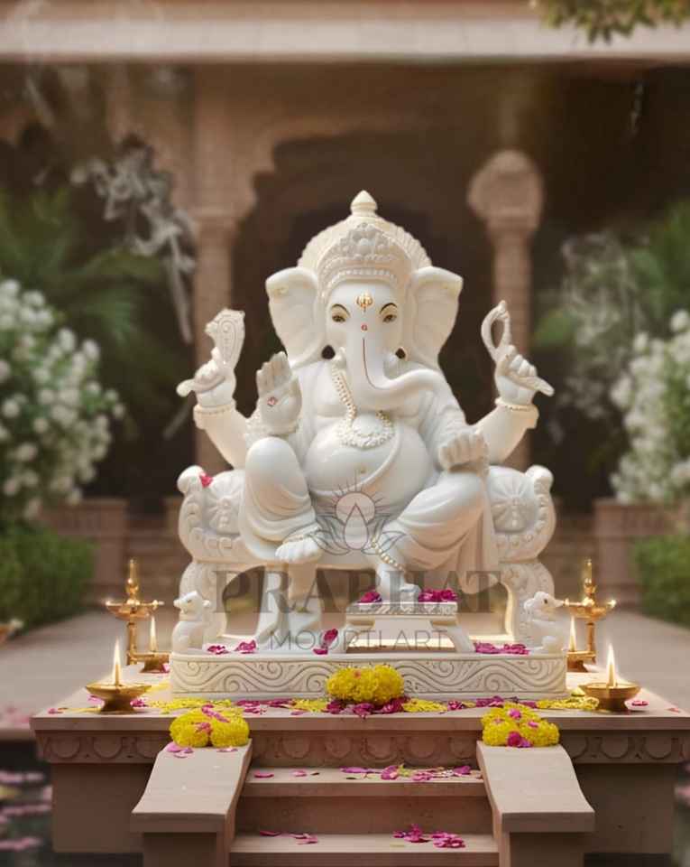 พระพิฆเนศหินอ่อนแกะสลักด้วยมือสุดหรู เป็นมิตรกับสิ่งแวดล้อม ขายดีที่สุด เหมาะสำหรับการบูชาประจำวัน ใช้ในสวนและวัด ปรับสมดุลตามหลักวัตสุ ราคาดีที่สุด
