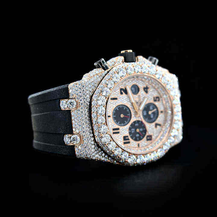 นาฬิกาโมอิสซาไนต์สุดหรูขายดี พร้อมเพชรความใสระดับ VVS โลโก้สั่งทำ หน้าปัดอนาล็อก ราคาขายส่ง ประดับเพชรเต็มเรือน
