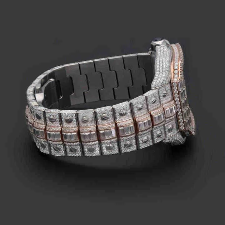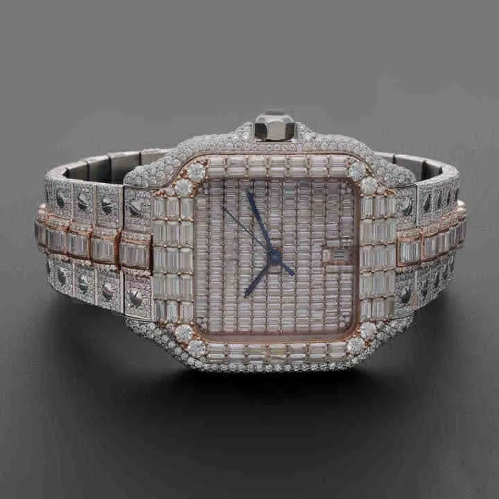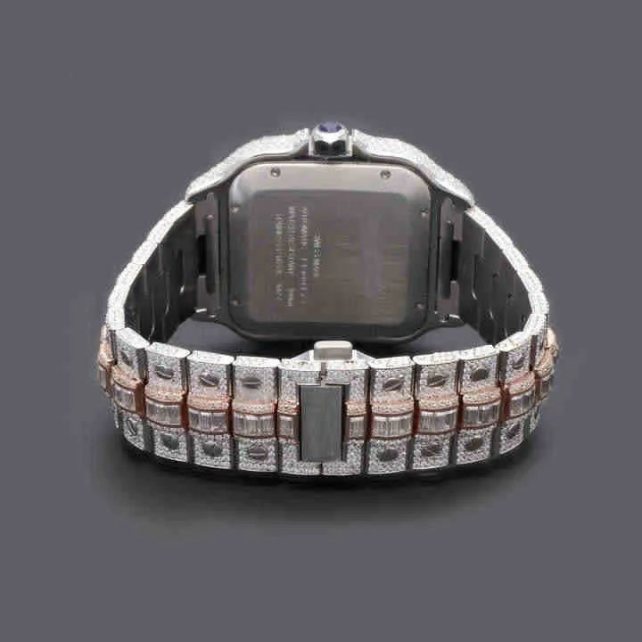 นาฬิกาโมอิสซาไนต์สุดหรูขายดี พร้อมเพชรความใส VVS นาฬิกาผู้ชายแบบกำหนดเองได้ ตัวเรือนทรงเหลี่ยมประดับเพชรเต็มหน้าปัด ราคาขายส่ง