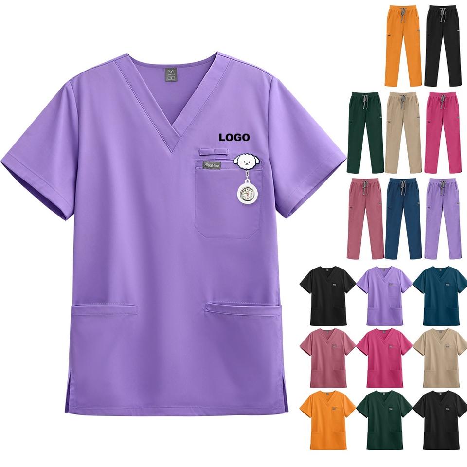 ชุดยูนิฟอร์มแพทย์พยาบาลแบบสครับขายดี แขนสั้น ซักได้ สกรีนโลโก้ได้ ชุดผ่าตัดแบบยืดได้ เสื้อยืดและกางเกง
