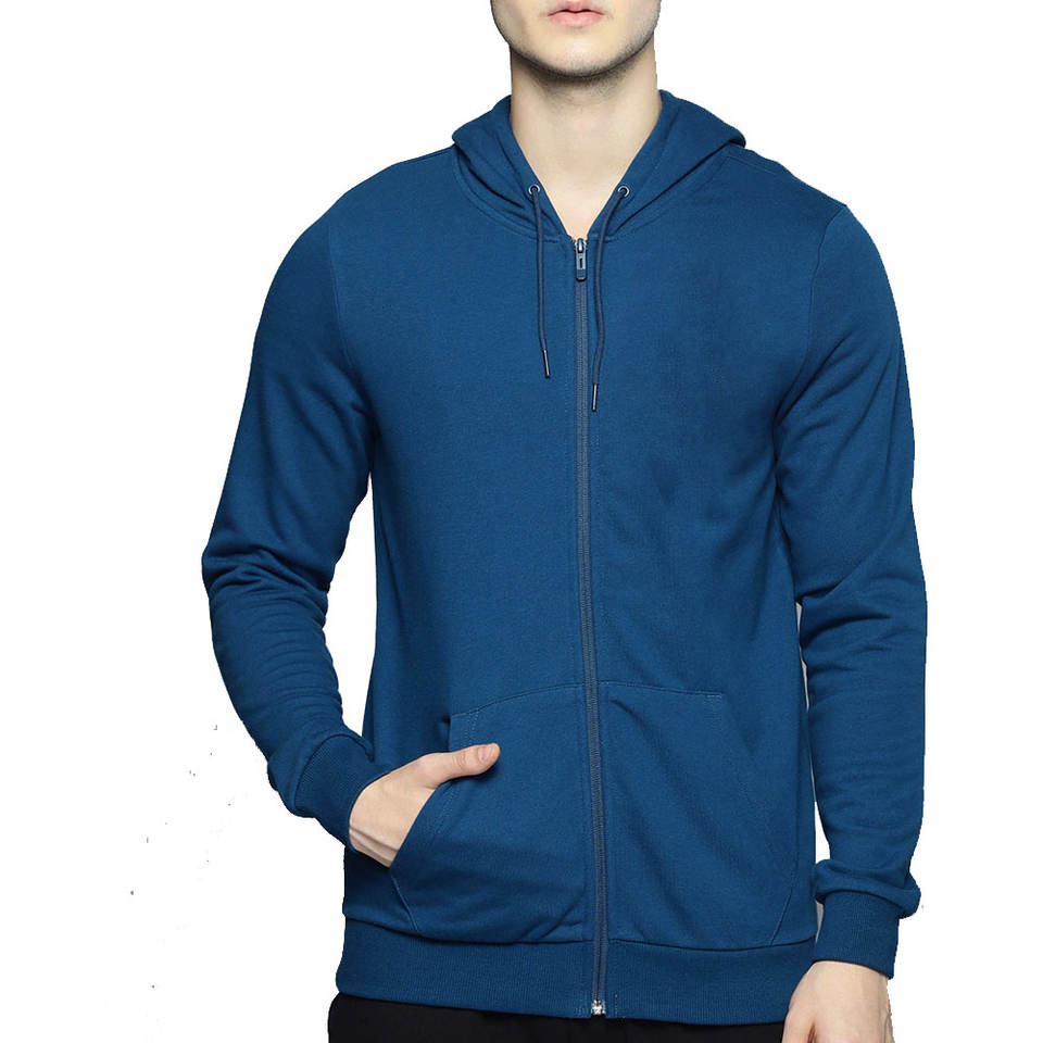 เสื้อฮู้ดซิปสำหรับผู้ชายผ้าคอตต้อนมีฮู้ดมีซิปแบบธรรมดา100%