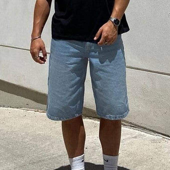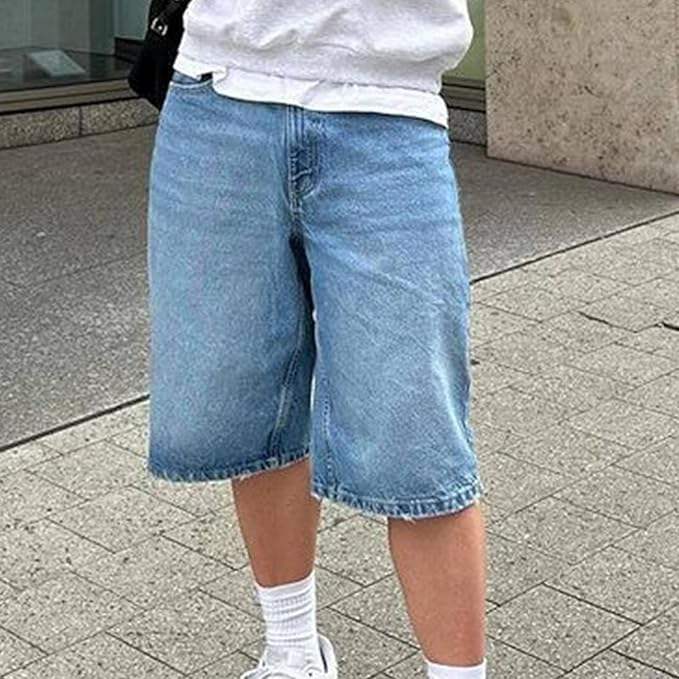 กางเกงขาสั้นผ้ายีนส์สำหรับผู้ชายกางเกงขาสั้นแบบหลวมสำหรับใส่ซักแบบกำหนดเอง2025เสื้อผ้าแนวสตรีทแวร์ฤดูร้อน