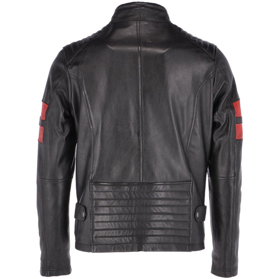แจ็คเก็ตหนังผู้ชายขายดีที่สุด สีดำและสีแดง มีจำหน่ายในราคาขายดีที่สุด แจ็คเก็ตหนังฤดูหนาวสำหรับผู้ชาย