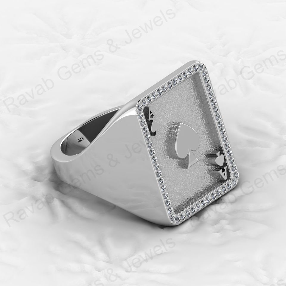Ace of Black Spade Signet Poker Ring