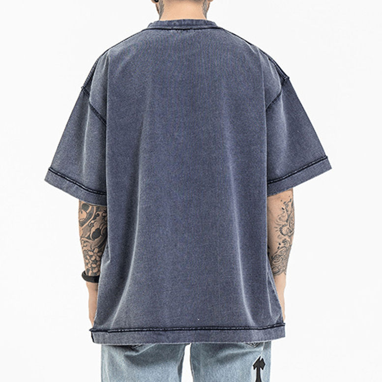 เสื้อยืดคอกลมเปิดไหล่ปล่อยกรดสำหรับผู้ชายเสื้อวินเทจใส่ได้ทั้งชายและ250gsm โอเวอร์ไซส์