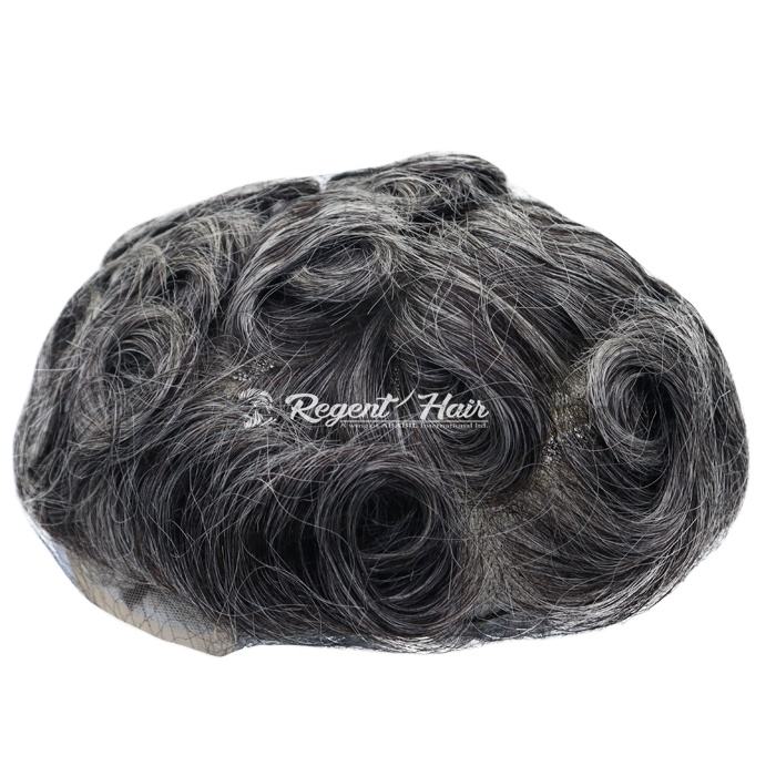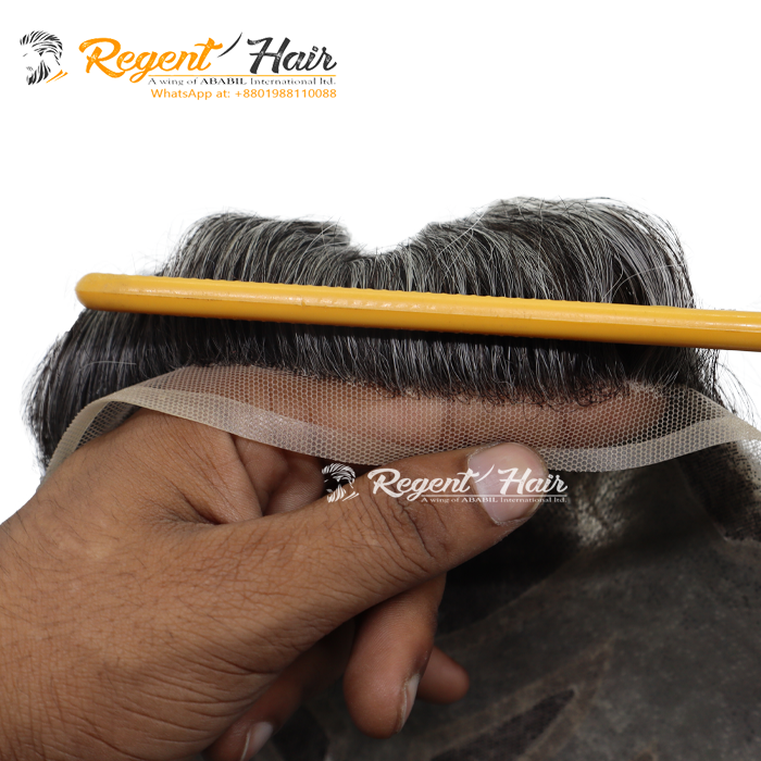 วิกผมผู้ชายสีดำผมปลอมด้านหน้าแบบบางดีไซน์ใหม่